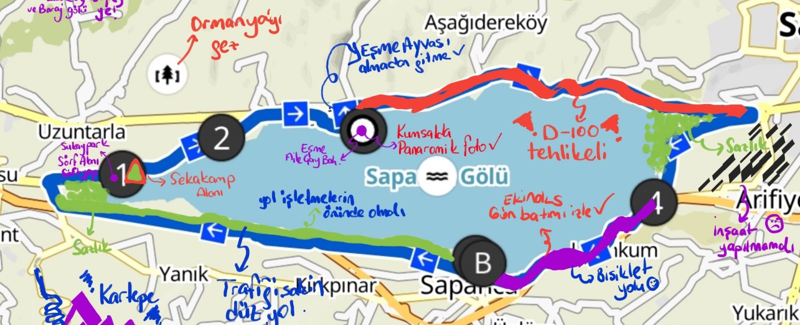 - Sapanca Belediyesinin 4km’lik bisiklet parkuru hiç yoktan iyi olduğunu ama parke taşların kırık ve sürüşü tehlikeye soktuğunu belirtmek isteriz. Denizimo’dan sarsıntıdan çok rahatsız oldu. Toprak yol kalmasını tercih ederdik.